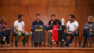 Jugadores de Newell's y Rosario Central participaron de una charla ante alumnos del colegio secundario del Normal 2 en el mediodía de este miércoles. La idea era llevar el mensaje de la "no violencia" en la previa al clásico que se disputará el próximo domingo a las 15 en el Coloso Marcelo Bielsa con arbitraje de Federico Beligoy.