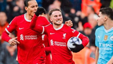 El duelo de argentinos entre Alexis Mac Allister, autor de un gol, y Julián Álvarez terminó a mano. Liverpool y Manchester City igualaron 1-1 este domingo por la fecha 28 de la Premier League, en un partido jugado en el estadio Anfield Road. El Arsenal se trepó a la cima y tiene los mismos puntos que los Diablos Rojos, pero mejor diferencia de gol.