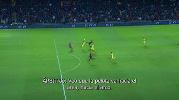 Primero, los jueces Darío Herrera y Javier Uziga, encargadados del VAR en el partido, constataron que Broun estaba fuera del área, pero al ver la jugada desde distintos ángulos y cámaras, comprobaron que quien la tocó con la mano fue Komar.