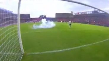 #TNTSports | Y se suspendió nomás. Tercera bomba de estruendo adentro de la cancha, y Merlos manda a los jugadores a las duchas a los 21 del primer tiempo.