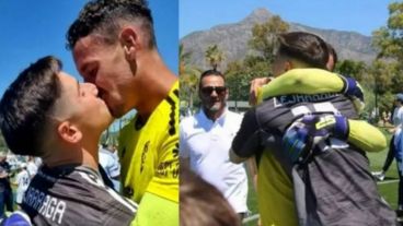 En las fotos que acompañan el mensaje se ve el abrazo con un jugador y luego el beso, haciendo pública la relación que mantienen. El gesto de animarse a contar su decisión sexual dentro de un ambiente donde los estereotipos están tan marcados, le valió al arquero las felicitaciones y los saludos de muchos compañeros, seguidores y público en general.