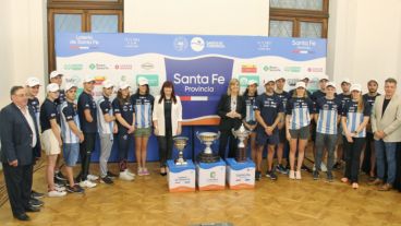 La vicegobernadora Alejandra Rodenas, junto a ministros de la provincia y los organizadores de la 46° edición de la Maratón Acuática Santa Fe-Coronda, presentó a los nadadores que participarán de la competencia denominada como “la más linda del mundo”, que se desarrollará este domingo 13 de noviembre.
