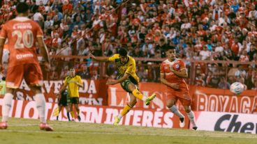Una joya teledirigida de Justo Giani, que fue la figura del partido, Aldosivi se puso en ventaja. El ex Newell's recuperó un nivel que mostró en buena medida en Patronato, pero que nunca mostró en Rosario.