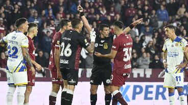 No solo se escuchan los diálogos entre Andrés Merlos, juez principal, con Silvio Trucco (VAR) y Diego Verlotta (AVAR), sino también el grito de Carlos Izquierdoz, zaguero de Lanús, al árbitro antes de su expulsión.