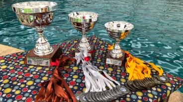1 de 2 | Las campeonas del Nacional. (Prensa Federación Rosario de Natación)2 de 2 | Los trofeos y medallas del certamen nacional. (Prensa Federación Rosario de Natación)