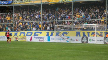 Justamente Rivero tuvo la más clara del primer tiempo, a la salida de una contra que se produjo luego de la protesta canalla por una supuesta mano en el área. Pero se la dejó en las manos a Ledesma. Del lado auriazul, un cabezazo desviado por poco de Alarcón fue la aproximación más clara. Mucha lucha pero poca claridad de ambos bandos.