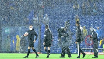 Al llegar la hora del inicio del juego, el árbitro Patricio Loustau recorrió el césped, algo que ya había hecho previamente, intentó hacer rodar la pelota, pero finalmente decidió la postergación.