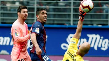 El astro rosarino Lionel Messi se consagró este domingo goleador de la liga española por sexta vez en el empate de Barcelona ante Eibar por 2 a 2, con dos anotaciones que lo dejaron a un paso de obtener la Bota de Oro europea.