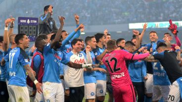 El equipo del sur de Italia, que tiene a Diego Maradona como el máximo ídolo de su historia, se había consagrado campeón después de 33 años el jueves pasado tras empatar 1-1 ante Udinese en condición de visitante.