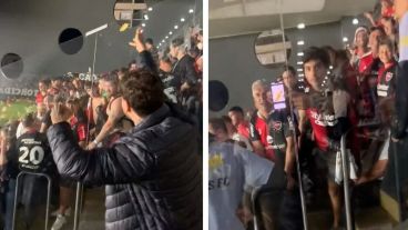 En el sector de la cancha, donde a las dos hinchadas los separaba un acrílico, hubo cruces de mal gusto una vez más. Una mujer de Newell's con un bebé en brazos gesticuló como un mono y después otro mostró señaló la foto de una banana en su teléfono celular.