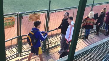 El Loco accedió a sacarse fotos y saludó a todos pero también estuvo atento a la cancha. Hasta tomó notas, contaron a Rosario3.com algunos de los presentes.
