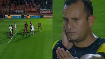 Salió con todo a gritar el gol, pero casi de inmediato el segundo árbitro asistente, Juan Del Fueyo, levantó el banderín porque consideró que estaba adelantado. La jugada se empezó a revisar desde el VAR, a cargo de Yael Falcón Pérez y Fernando Echenique, y luego de varios minutos de chequeo y deliberación, le indicaron al juez principal Darío Herrera que Martínez, efectivamente, estaba en fuera de juego.