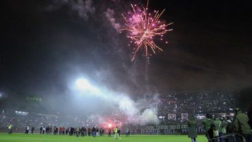 Además del calor en las tribunas, hubo fuegos artificiales y más tarde se apagaron las luces para que el espectáculo sea aún más vistoso.
