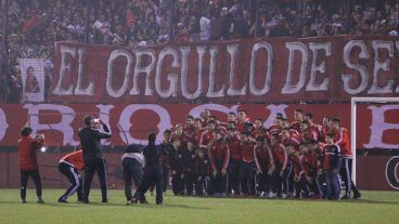 Por su parte, los jugadores saltaron y cantaron en el campo de juego. También realizaron una ronda y se movieron al compás de sus hinchas. El DT Diego Osella estuvo entre ellos.
