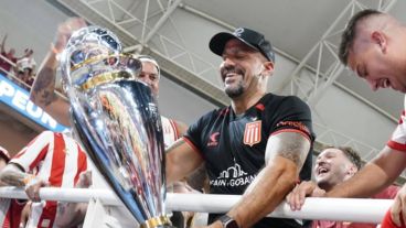 Siguió los festejos desde las gradas y le acercaron la copa para que la abrazara y besara. La tuvo en sus manos y la levantó como cuando era capitán.
