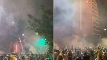 En los videos que compartieron los hinchas en las redes sociales después de la medianoche y ya entrando en el jueves 24 de diciembre, fecha del cumple canalla, se puede observar a cientos de fanáticos cantando por "Lacadé", en medio de los destellos y los colores de los fuegos artificiales.