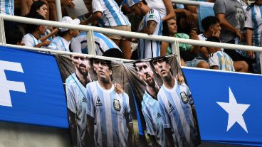 El partido comenzará a las 20.30, pero los festejos dentro del estadio comenzaron mucho antes. Ya desde el mediodía había hinchas cerca del sitio en el que se presenta Lionel Messi y sus compañeros campeones del mundo.