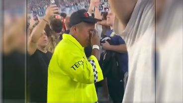 La selección argentina celebró este jueves en el Monumental la obtención de su tercer título del mundo con un amistoso ante Panamá. Al margen de la victoria por 2 a 0 con goles de Almada y Messi, lo que unió a todos los presentes fue la emoción. Así le ocurrió a uno de los guardias de seguridad del estadio, que no pudo contener sus lágrimas ni siquiera de espaldas al partido.