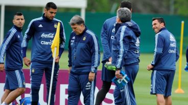 Los goleadores Sergio Agüero y Carlos Tevez realizaron labores diferenciadas en la primera práctica del seleccionado, pero se estima que ambos estarán a disposición del DT Gerardo Martino en el encuentro del jueves.