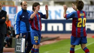 Fue en un encuentro de Liga disputado en el Estadio Lluís Companys contra el RCD Espanyol. Entonces, con el dorsal 30, entró desde el banco en sustitución de Deco, autor del gol del triunfo culé por 1 a 0. Era el minuto 82 y con 17 años, 3 meses y 22 días, el rosarino firmaba su primera presencia oficial con la camiseta azulgrana.