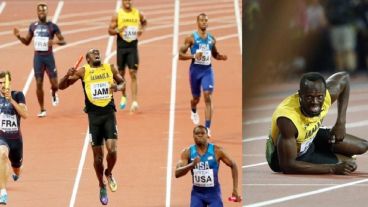 Bolt, de 30 años, se tocó a media recta el muslo derecho y cayó con gestos de dolor. Allí permaneció durante dos minutos, antes de incorporarse para entrar caminando en la meta.