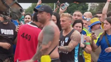 Con una musculosa de Temperley, equipo del que es hincha, se enfrentó con un efectivo de la guardia montada, a quien le mostró en su celular el código QR de su entrada.
