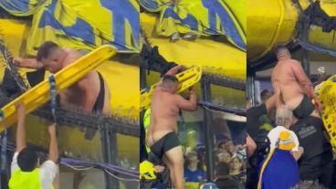 Un hincha de Boca intentó bajar de la segunda bandeja de la Bombonera hacia el sector inferior, pero terminó semidesnudo, enganchado en el alambre de púas y tuvo que ser rescatado poco antes del partido contra Atlético Tucumán que temrminó en triunfo xeneize.