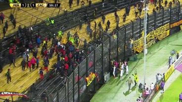 Este miércoles por la noche Peñarol de Uruguay y Colón de Santa Fe se enfrentaron por la última fecha del Grupo G de la Copa Libertadores. A los 15 minutos del segundo tiempo, el partido estuvo suspendido por 30 minutos por incidentes entre las hinchadas.