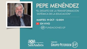 La Fundación Banco Santa Fe invita a participar de la conferencia "El desafío de la transformación sistémica de la educación”, que brindará el referente internacional en procesos de transformación escolar Pepe Menéndez el martes 19 de octubre a las 12 hs y que será trasmitida a través del canal YouTube de Fundaciones Grupo Petersen (FGP), con acceso libre y gratuito.