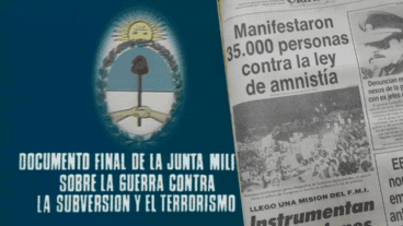 El 28 de abril de ese año final, el gobierno de facto emitió el "Documento final de la Junta Militar sobre la guerra contra la subversión y el terrorismo" que dio por muertos a los desaparecidos (minuto 37) y pretendió saldar las acusaciones por los delitos cometidos.