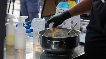 Clase de cocina al aire libre en el cruce de peatonales