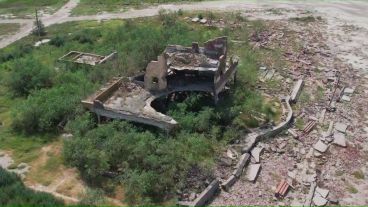 La sequía cambió la escenografía del histórico hotel de Melincué. Tierra y barro, ladrillos y escombros rodean sus ruinas, debido a que la laguna se redujo 10 veces. El sitio que fuera alojamiento de miles y miles de turistas de todo el país y de diversos puntos del planeta, hoy se ve distinto. Este miércoles, las cámaras y el drone de El Tres estuvieron allí para registrar las impactantes imágenes de la vieja laguna, las ruinas del hotel y la nueva escenografía que brinda la sequía en la región.