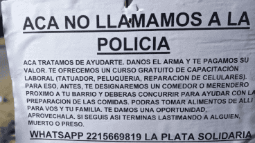 Una particular movida solidaria se viralizó en las redes sociales. Cansados de los hechos de inseguridad, los vecinos de La Plata decidieron colgar carteles en las calles con la consigna "Acá no llamamos a la policía". Si bien el texto pareciera apuntar a otro tipo de acciones, lo que busca es desarmar a los jóvenes y capacitarlos en oficios.