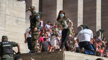 El escenario central fue el Monumento a la Bandera donde el festejo se prolongó durante la mañana y ya hacia las 8.30 estaba atestado de adolescentes. Hacia las 11.30 comenzó la desconcentración y muchos regresaron a sus casas a descansar o bien se fueron al parque en busca de algo de sombra para una pausa.