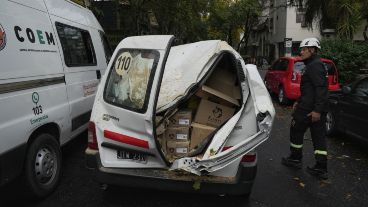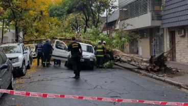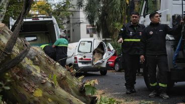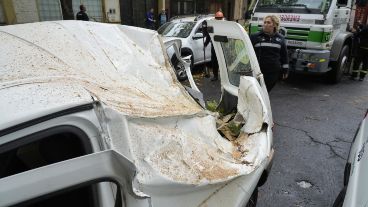 El árbol se desplomó sobre el utilitario y algunos troncos atravesaron las ventanillas.