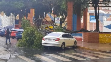 La lluvia no da tregua y ya la tierra no absorbe. Es así que el intenso chaparrón de este viernes por la mañana provocó la caída de una columna y de un árbol de la plaza Che Guevara sobre dos autos estacionados en pasaje Poeta Simeoni, en Tucumán y Mitre. De a poco, la Municipalidad recibía reportes similares en otros puntos de la ciudad, hacia medida mañana había 10 árboles caídos y tres columnas por el intenso chaparrón matutino.