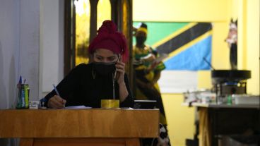 –Estou falando. Eu acho que sim –pasa hablando en portugués Tatiana, que hoy hace de cajera de la Asociación de Tanzania pero es abogada, asesora y experta en migraciones. También trabaja con el Club Argentino-Brasileño (con ellos habla ahora) y la Asociacion Civil y Cultural Ucraniana.