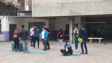 Los “sábados activos” comenzaron a desarrollarse en escuelas públicas provinciales. Una de ellas, en Rosario, es la Bernardino Rivadavia, ubicada en Oroño 1145, donde a pesar de mal tiempo, se congregaron alumnos y alumnas de 4° año del secundario.