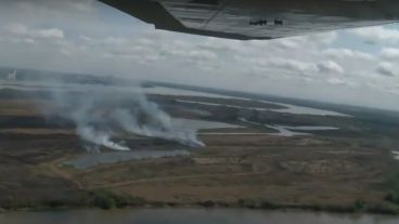 Desde las alturas (unos 300 metros), la aeronave sobrevoló la parte de la isla entrerriana que se incendia por estas horas. Lejos de aplacarse, se mantienen los tres focos importantes y una decena más de pequeños puntos humeantes, tal como se visibilizan desde el aire. De acuerdo a lo que señalaron desde la secretaría de Protección Civil y Gestión de Riesgos, un nuevo foco se originó en las últimas horas en la zona de La Brava, a pesar del agua.