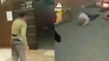 Luego, otro terrorista armado con un cuchillo se aproxima a un hombre herido tendido en el suelo y le asesta varios tajos en el cuello, para luego dirigirse a la cámara y dar una arenga.