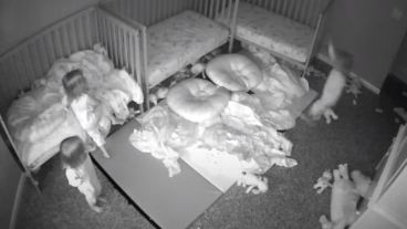Una cámara instalada en la habitación de unas trillizas capturó la escalofriante escena en la que las pequeñas de dos años parecen “hablar” con figura invisible que se encuentra en una de las paredes.