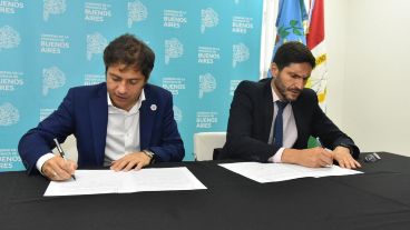 El gobernador de la provincia de Buenos Aires, Axel Kicillof, firmó este lunes un convenio junto con el gobernador de Santa Fe, Maximiliano Pullaro, para realizar tareas conjuntas y garantizar una asistencia recíproca entre ambas jurisdicciones en materia de nuevas tecnologías aplicadas a la seguridad y análisis sobre actividades criminales.