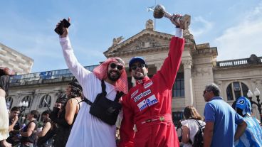Este martes por la mañana, estudiantes que se encuentran en la etapa final de la carrera de Medicina celebraban, frente a la Facultad, la tradicional "bajada", con un festejo que contemplaba música en vivo, baile y coloridos disfraces.