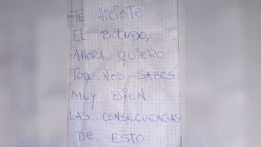 Los atacantes dejaron una nota escrita en un papel con un mensaje escrito en birome. "Te hiciste el boludo, ahora quiero todo. Vos sabés muy bien las consecuencias de esto", señalaba el texto.