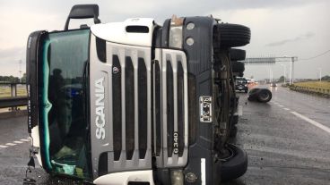 Un camión que trasladaba una carga de 200 media reses rompió un eje y volcó este miércoles sobre la avenida Circunvalación de Rosario, a la altura de bulevar Oroño.