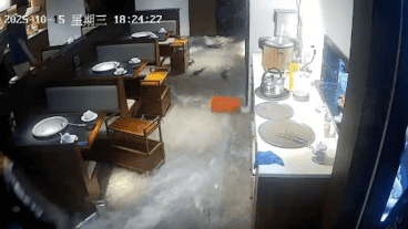 El incidente ocurrió en un restaurante de mariscos en ollas de piedra, donde el personal estaba ocupado en la cocina cuando el tanque estalló. Las imágenes captadas por la cámara muestran a los comensales sorprendidos gritando y al personal desconcertado entrando en acción para intentar controlar la situación.