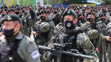 Los gendarmes que se sumaron al despliegue en la ciudad prestaron su compromiso de trabajo con la fórmula “subordinación y valor para defender a la Patria” ante el coordinador del comando unificado, el comandante mayor de Gendarmería, Ricardo Castillo.