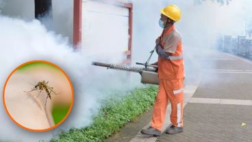 La televisión estatal china mostró a trabajadores rociando nubes de desinfectante por las calles de la ciudad, zonas residenciales, obras de construcción y otras áreas donde la gente puede entrar en contacto con mosquitos portadores del virus que nacen en aguas estancadas.