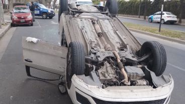 Un auto terminó dado vuelta en la zona sur de Rosario, este martes cerca de las 7 de la mañana. De acuerdo a la versión que dio el conductor, intentó esquivar a dos ciclistas, chocó contra dos autos estacionados y volcó.