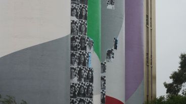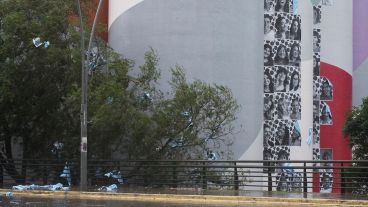 Erica Aguirre, del Museo Macro, explicó en De 12 a 14 (El Tres) que “el pegamento se despegó con la lluvia, precisamente porque no es un pegamento muy fuerte para no dañar la intervención histórica que tienen los silos”.